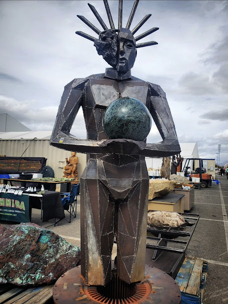 So, what is the Tucson Gem and Mineral show actually like? It’s chaos. It’s crowds. It’s overwhelming. But also, so fun browsing and finding a good deal on something you love. If you are a first-timer, or someone who is looking for jewelry, or some higher end pieces, I recommend you start at the main event at the Tucson Convention Center. As soon as you enter, you see vendors and booths as far the eye can see. Lots of jewelry, lots of high quality pieces in glass cases, huge crystals, lamps, sculptures, beautiful pieces of art, and lots of people. In all seriousness though, if you have the budget, it’s great, but it’s also like a museum, which I love.